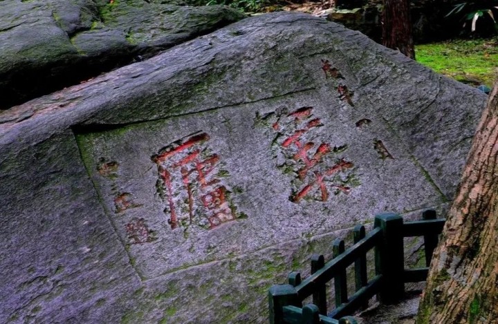 庭園中(zhōng)有(yǒu)一天然裸露石丘,上面镌刻着“美廬”二字,左下刻有(yǒu)“中(zhōng)正題”,這是蔣介石于1948年8月親筆(bǐ)題寫。可(kě)以說,這塊摩崖石刻,既是這幢别墅庭園的“點睛”之筆(bǐ),也是蔣介石夫婦對“美廬”的鍾愛的曆史印迹。