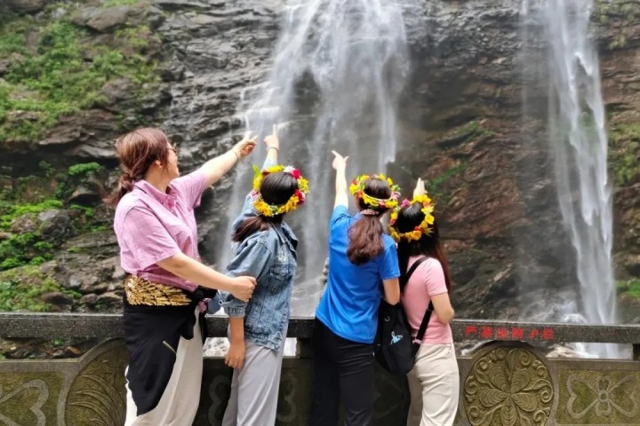 登山(shān)比較辛苦,此時正是上午10點,不是火熱的夏季,也沒有(yǒu)毒辣的烈日,但此時我的汗水像針般無情的直刺臉頰,像在火爐裏炙烤着,為(wèi)了看到瀑布,我一直鼓勵自己,要像懸崖一棵草(cǎo)一樣,風吹日曬都不怕。沿路的風景吸引着我們,腳下踏着石階前行,眼睛也是一刻不閑地記錄着旖旎風光,美景當前,亦如饕餮盛宴。