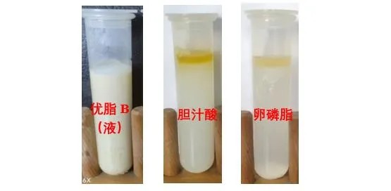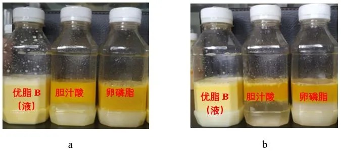 圖3. 不同乳化劑對油脂乳化能(néng)力的影響(a.破乳前,b.破乳後)